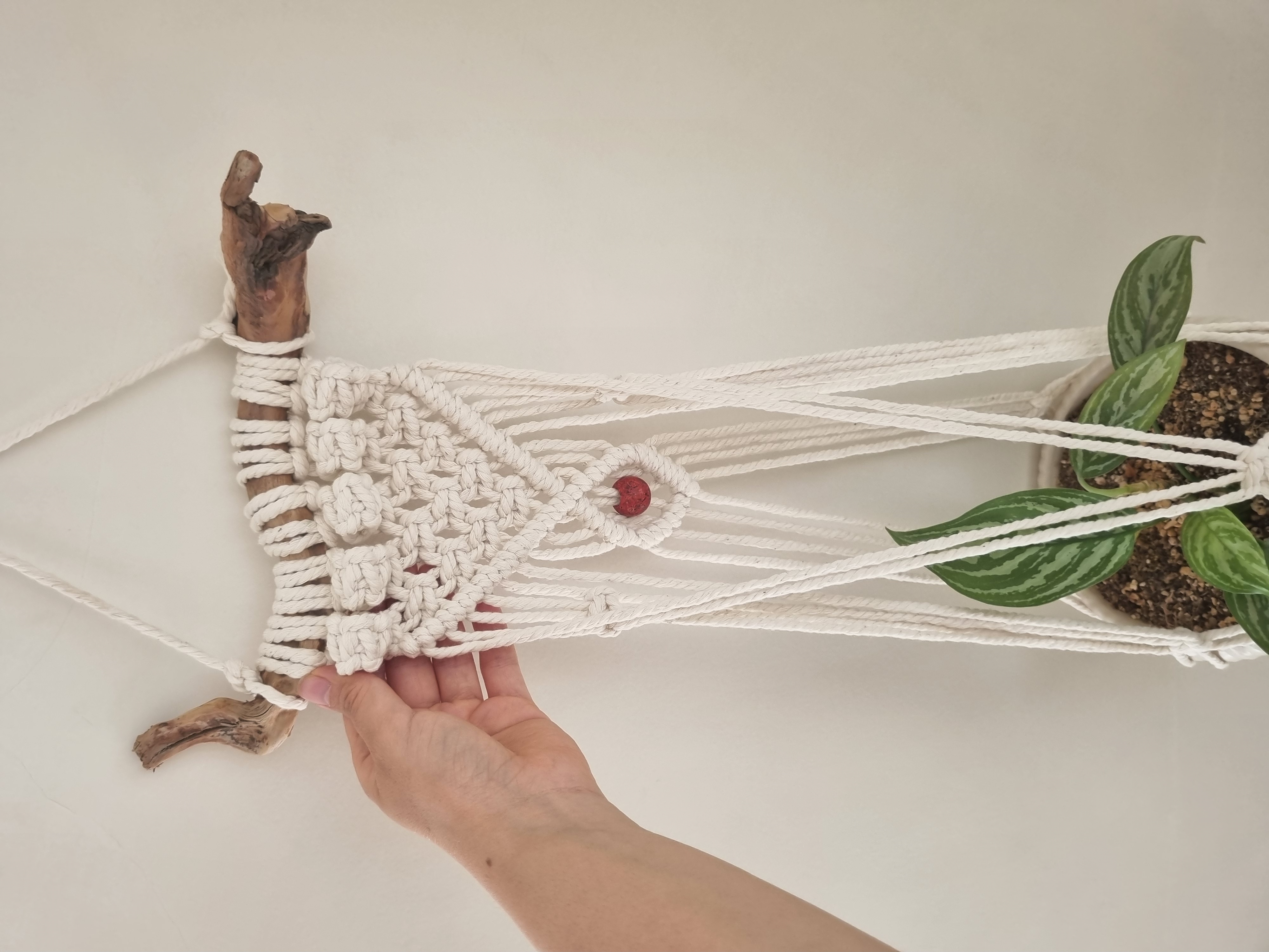 *با توجه به اینکه برای آماده سازی این مدل آویز گلدان چوب طبیعی به کار می رود، لازم به ذکر است که شاخه چوب استفاده شده برای محصول انتخابی شمابه دلیل منحصر به فرد بودن چوبها عیننا مطابق تصویر نخواهد بود و با توجه به سایز محصول شاخه چوب مناسب در نظر گرفته خواهد شد،اما تمام سعی ما این است از شاخه چوب های مدل دار و قوس دار استفاده شود.
