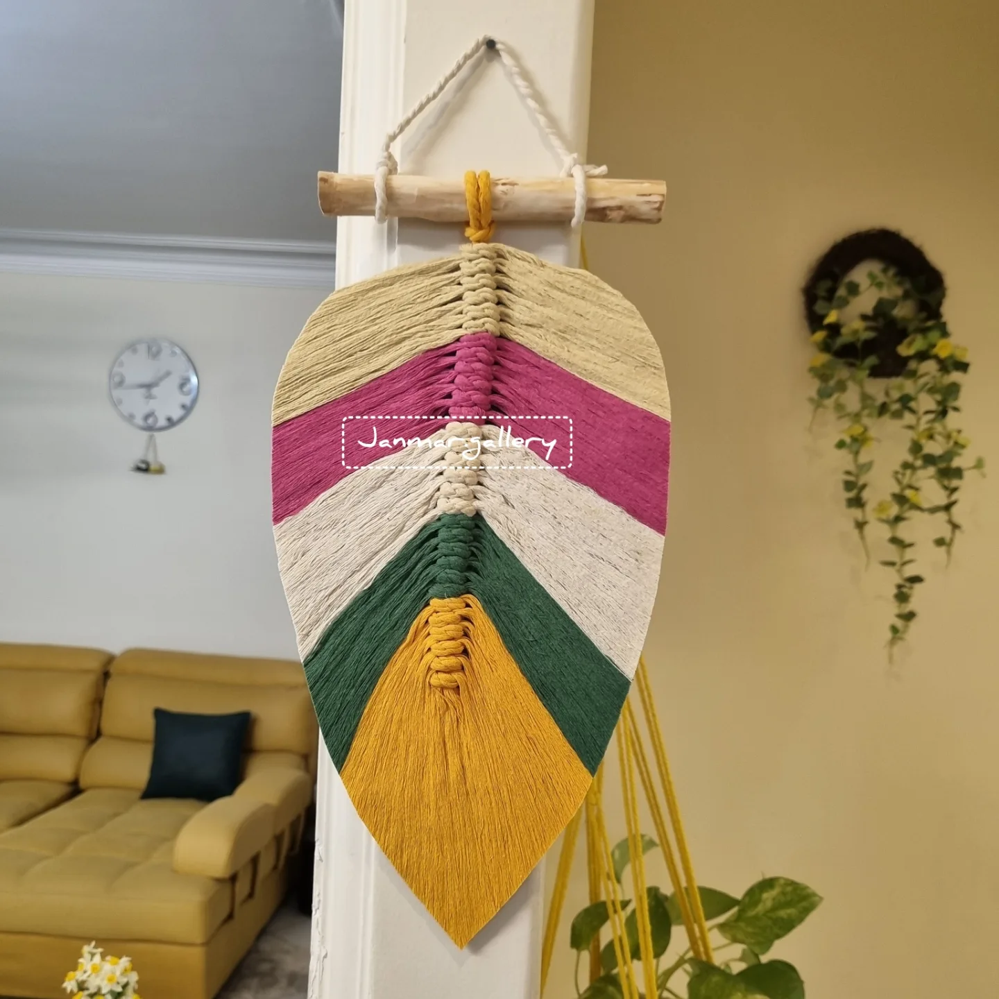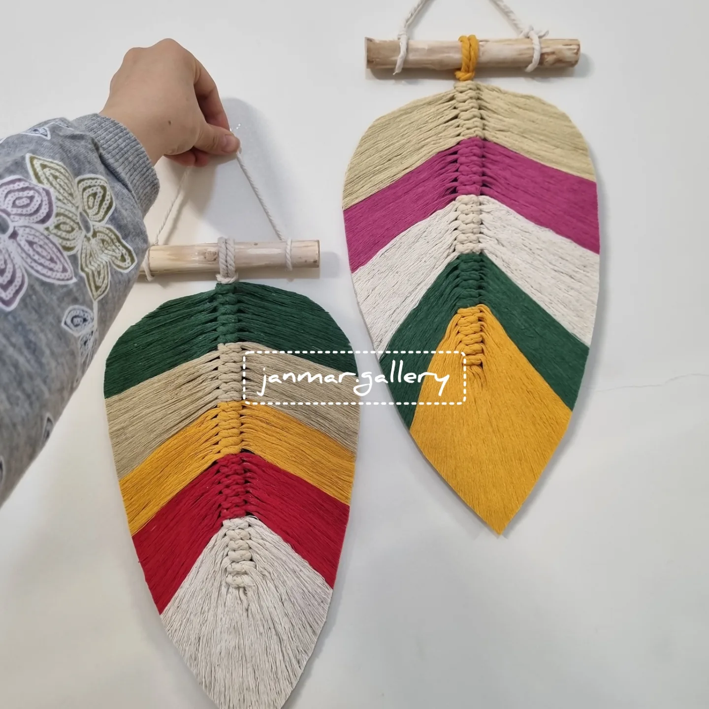 لطفا ورق بزنید و چیدمانش رو در فضاهای مختلف ببینید با هدفِ زیباتر شدن و ایجاد فضای گرم و دل انگیز در خانه میتونید دیوارآویز تک برگِ بزرگ مکرومه رو به چیدمان منزلِ قشنگتون اضافه کنید @janmar.gallery مشخصات: ارتفاع:۳۲↕ عرض:۱۹↔ طول چوب:۱۵ قابل اجرا در سایز بزرگ یا کوچکتر،رنگ به سلیقهی شما اجرا میشه استفاده شده از نخ مکرومه اعلا @janmar.gallery ارسال به ثبت با بیعانه