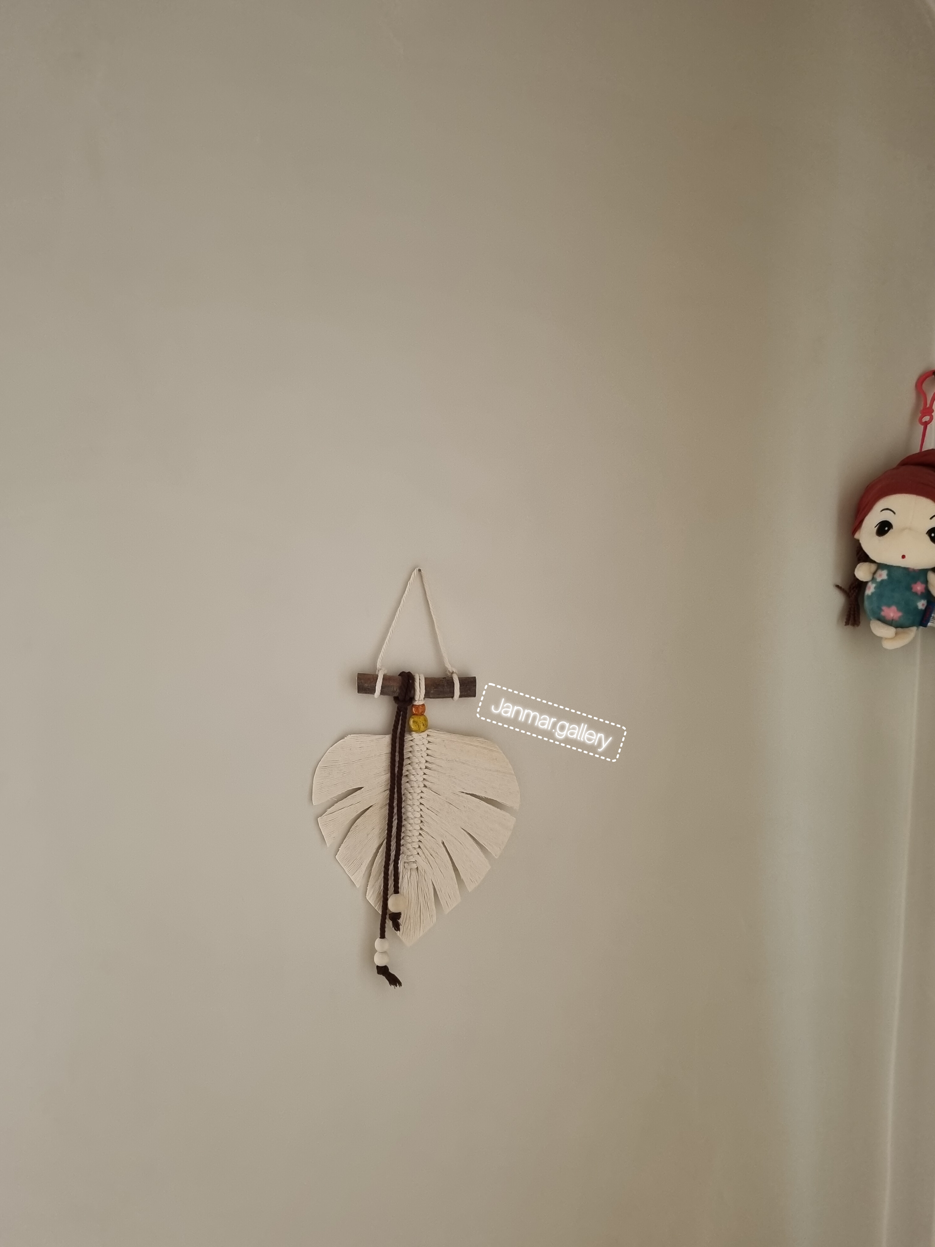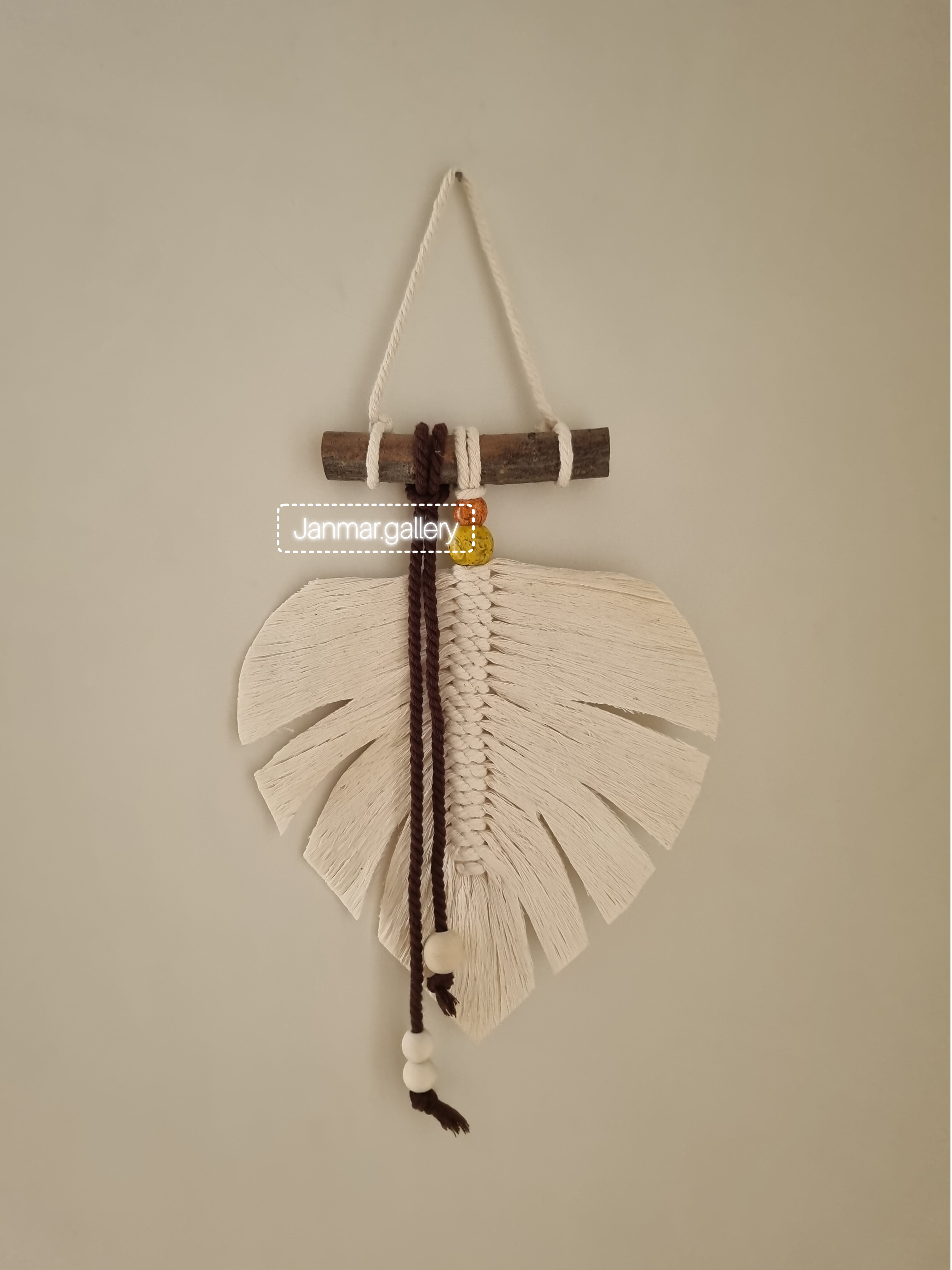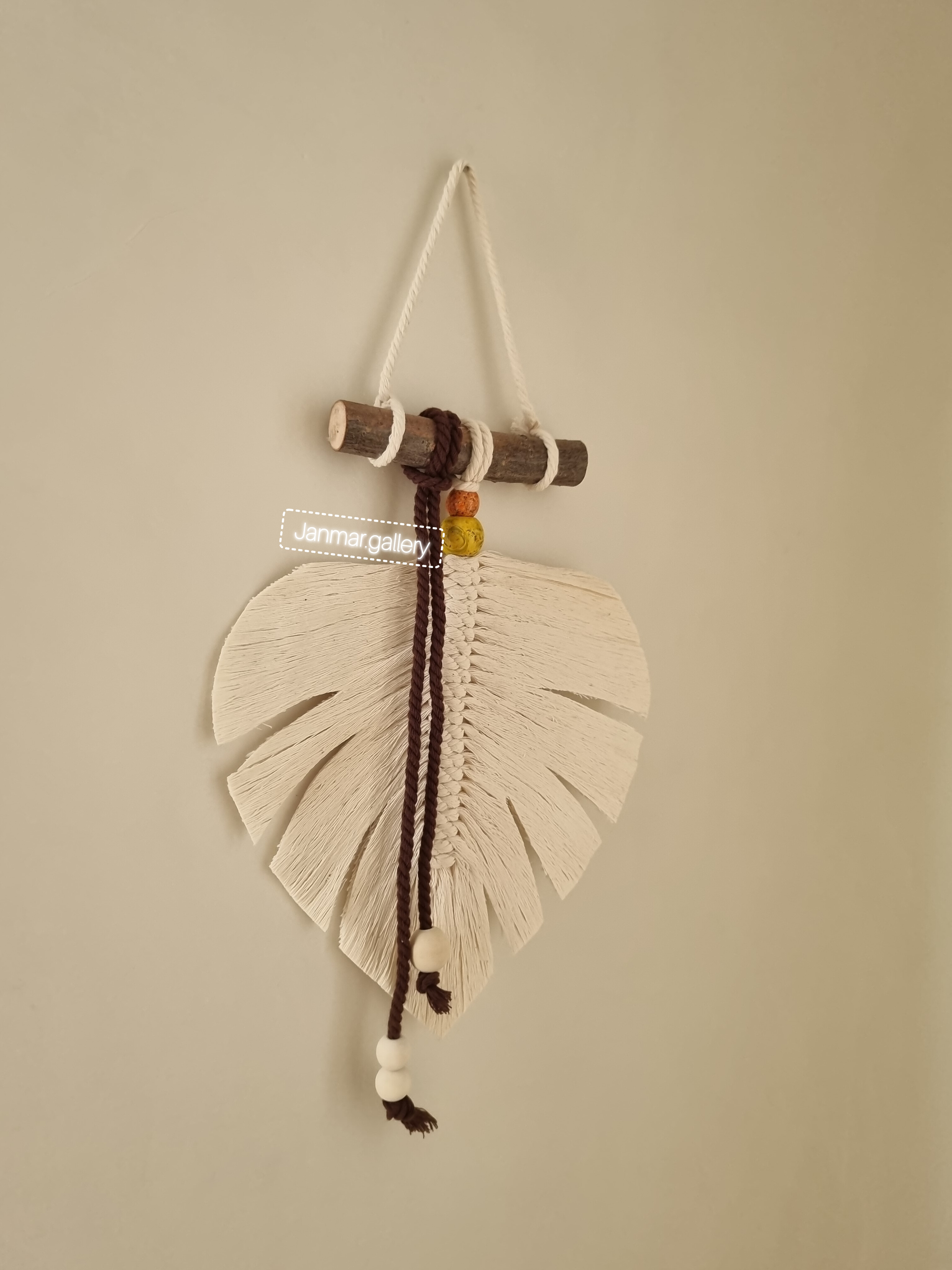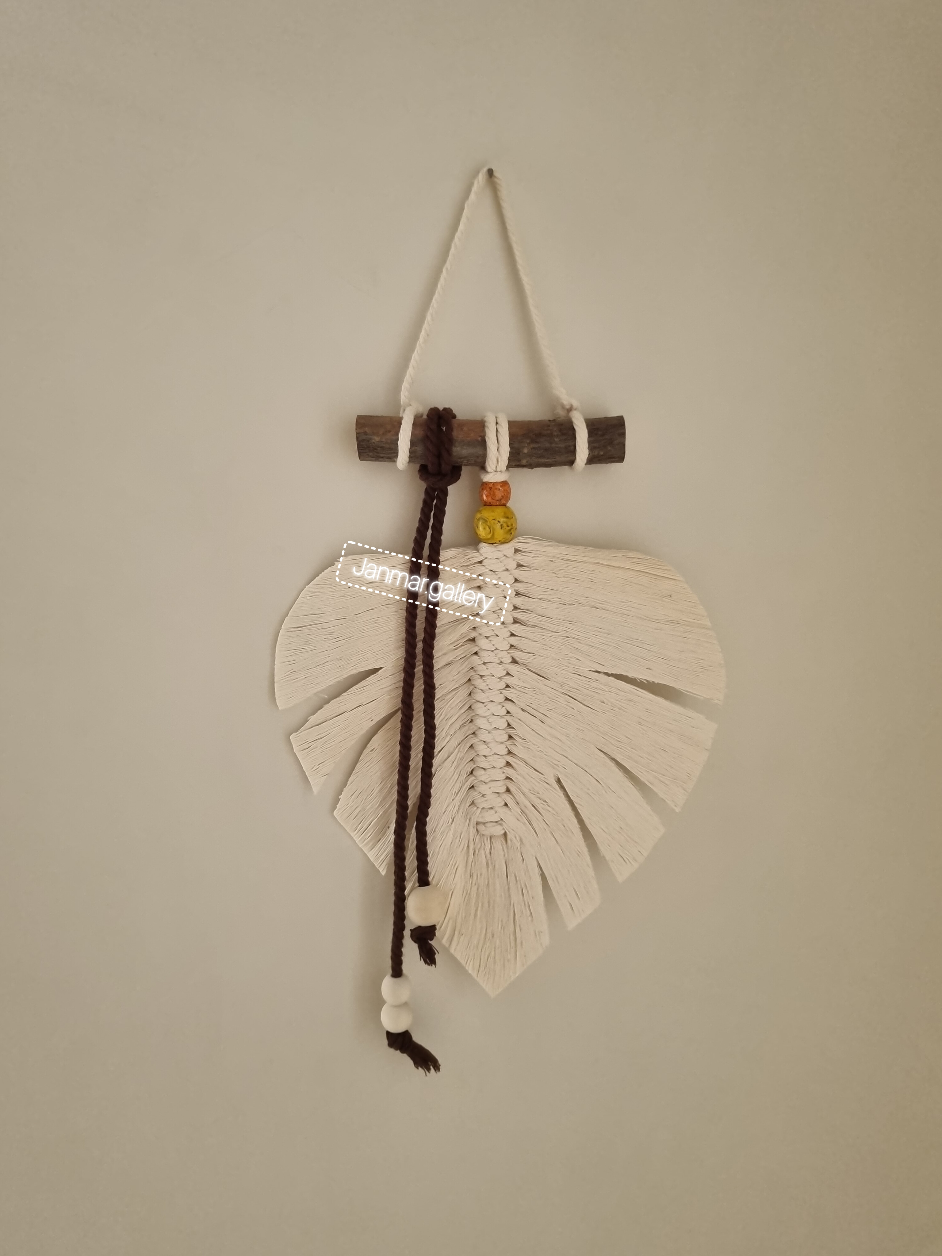 این اثر با ترکیب مکرومه و المانهایی مثل چوب و مهره تزیین شده است و به عنوان یک قطعه دکوراسیون دیواری،فضای خانه،دفتر و محیط کاری تجاری را گرم و جذاب می کند