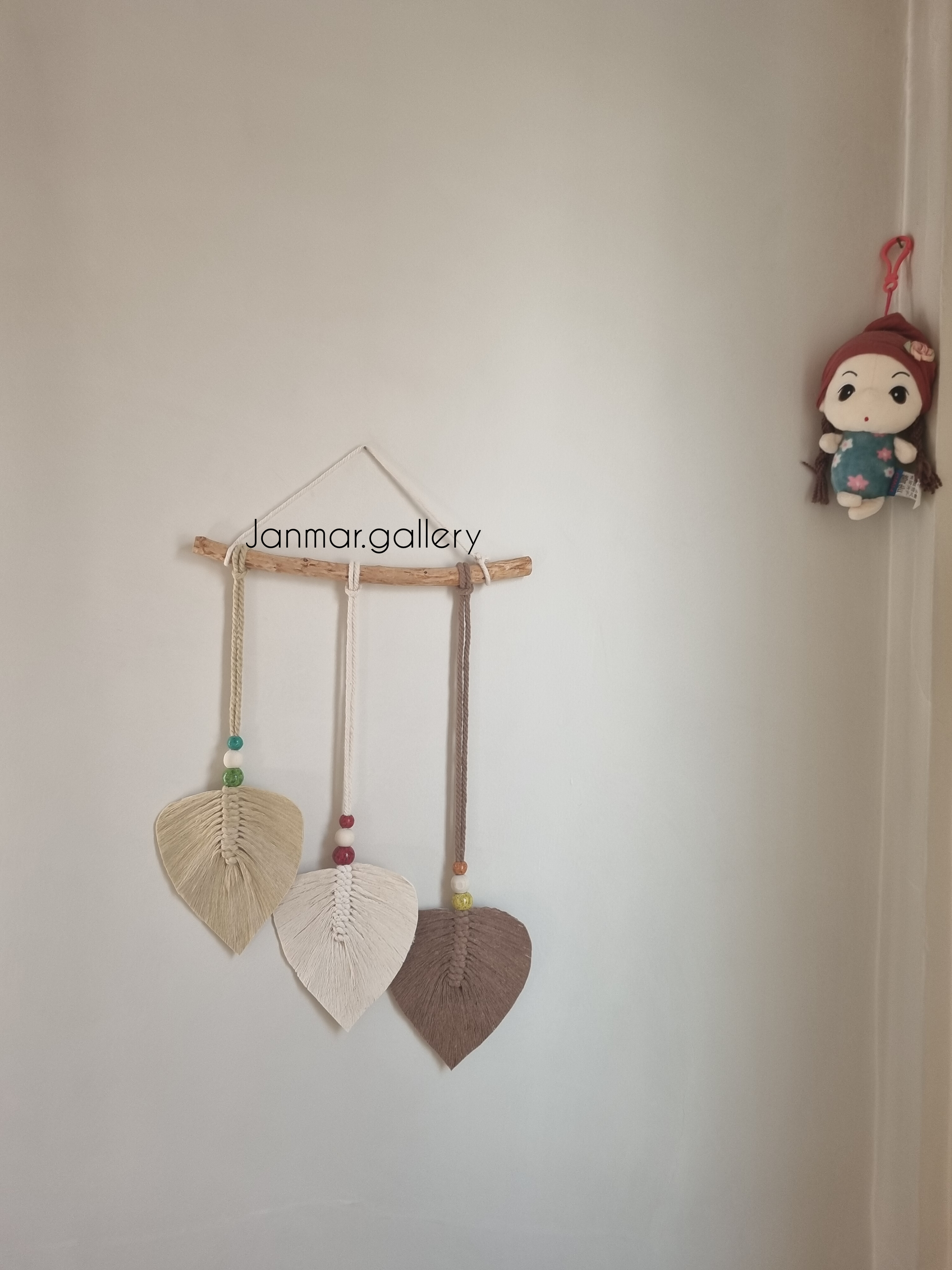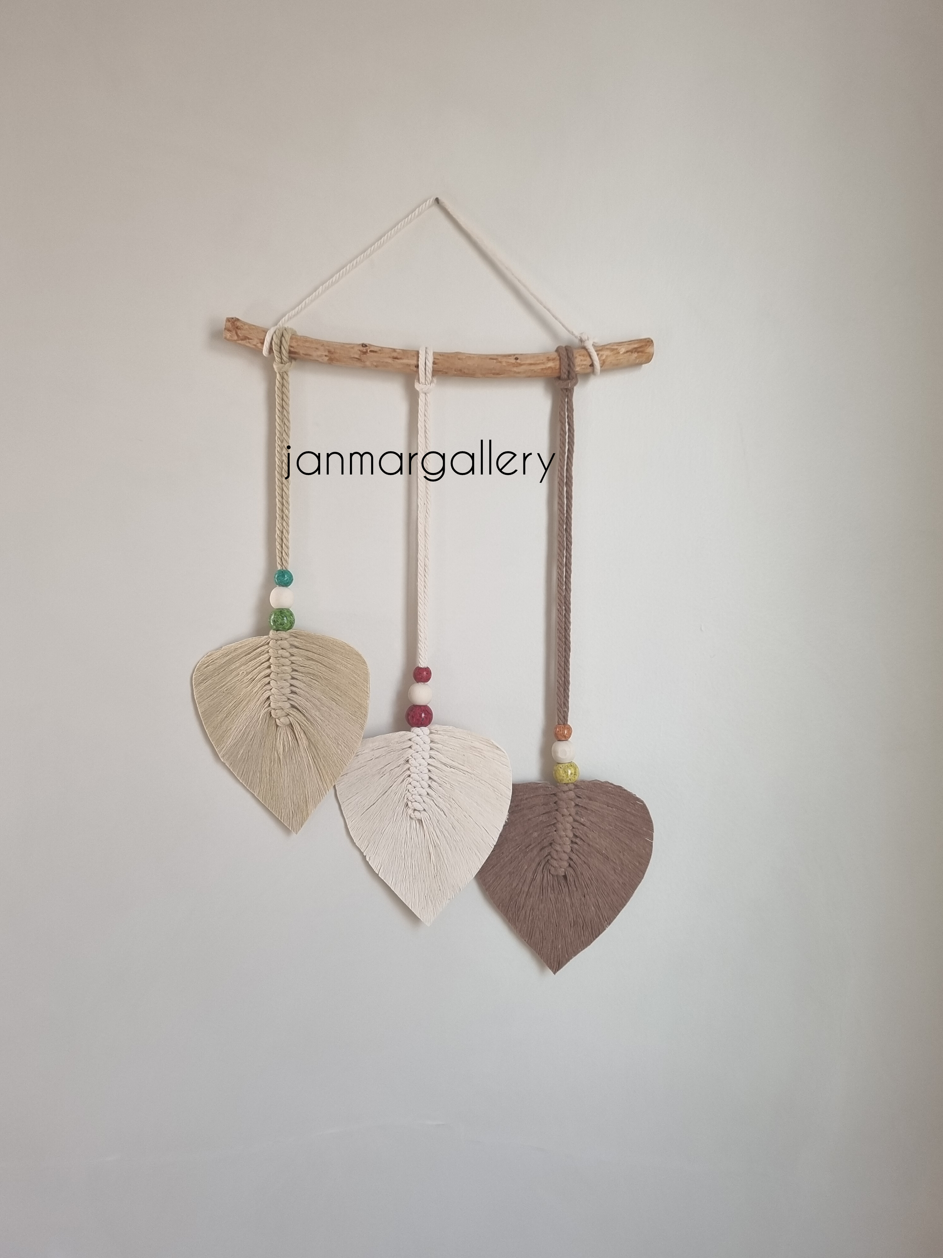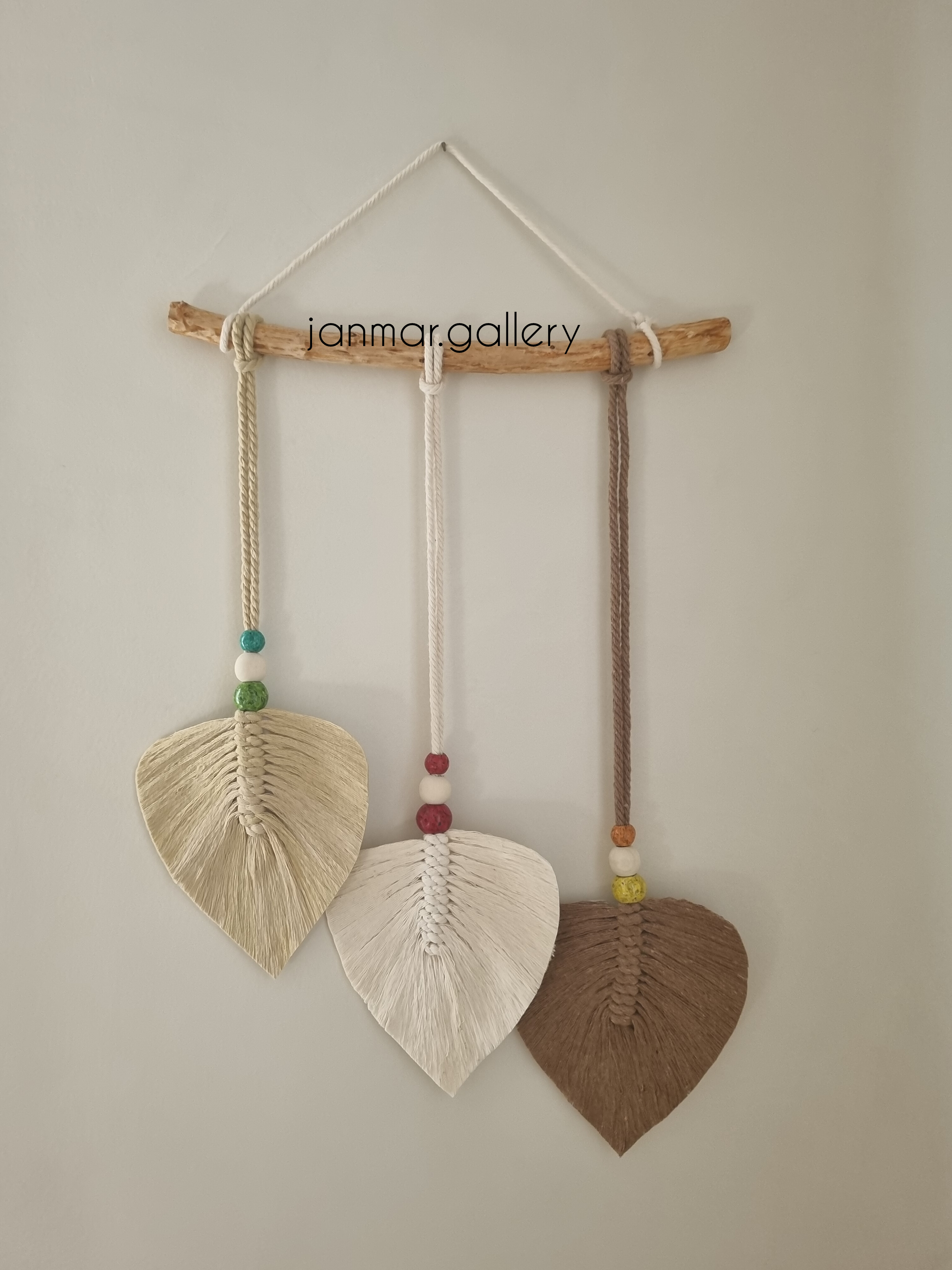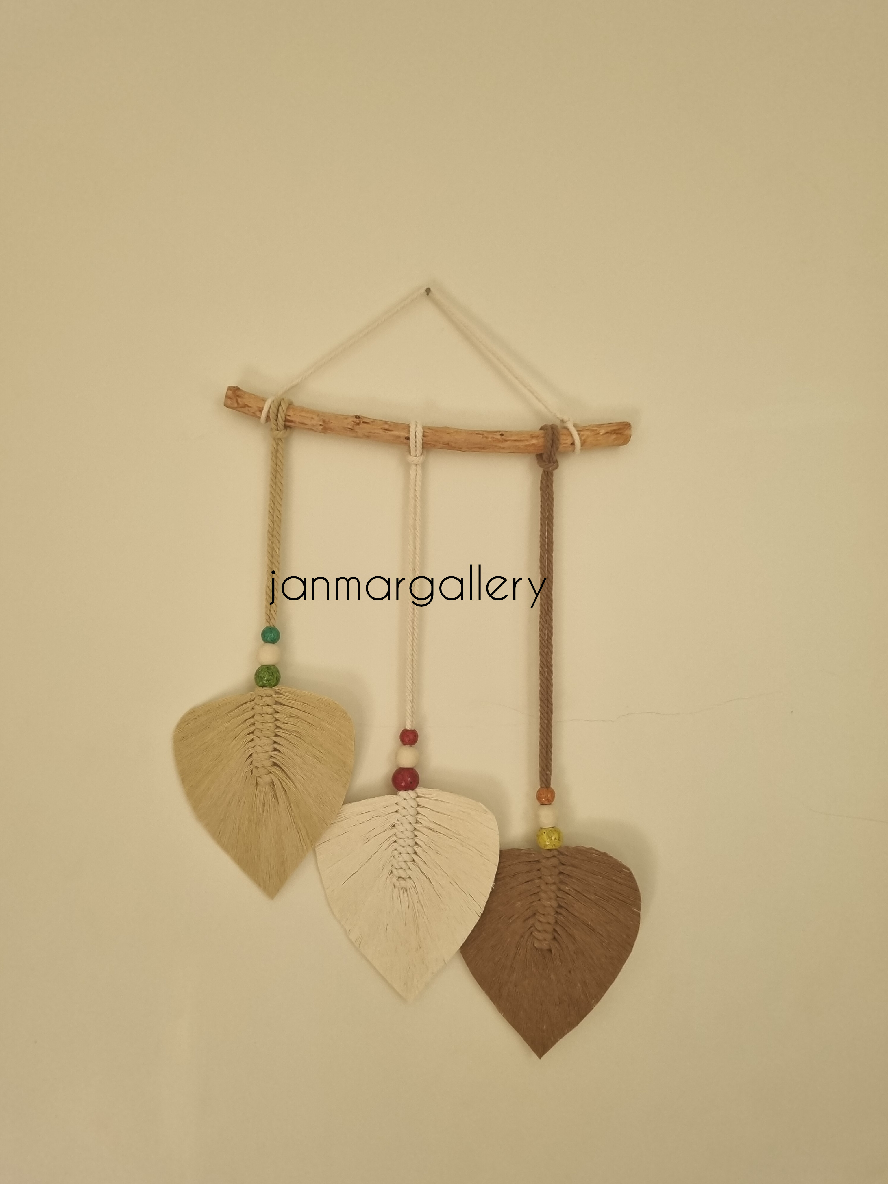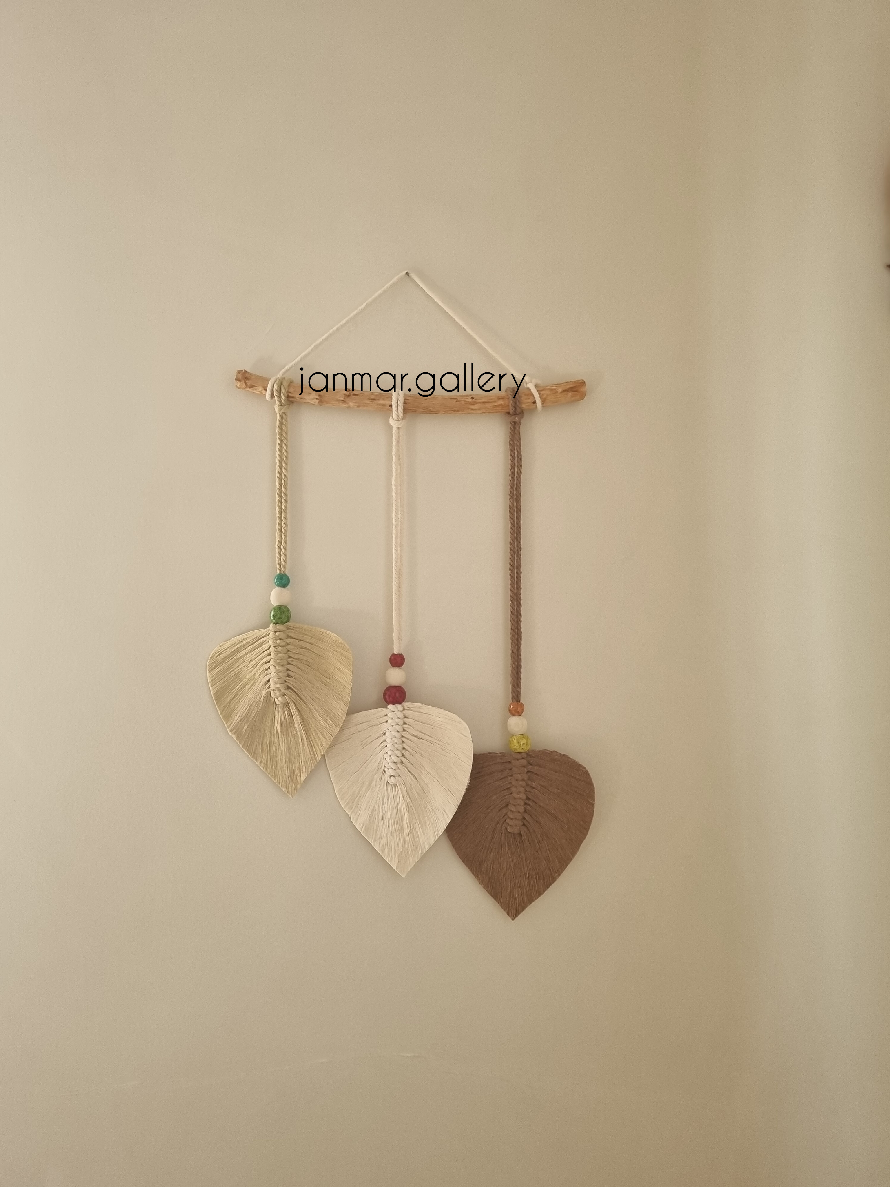 دیوارکوب ۳ برگ مکرومه با ترکیب رنگ کرم شیری و قهوه ای استفاده شده از نخ باکیفیت و جنس مقاوم